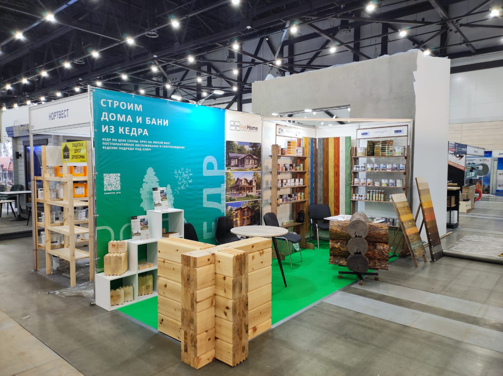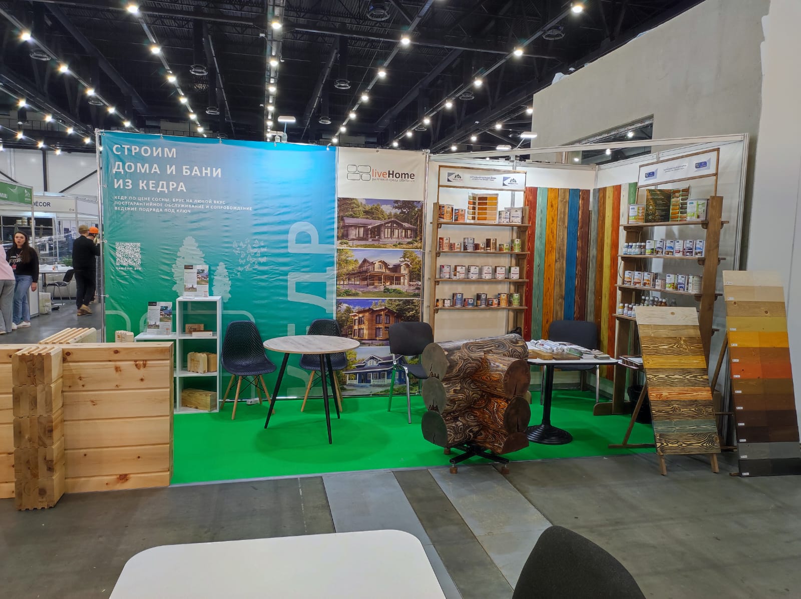 Мы активно участвуем в выставках, посвященных строительству деревянных домов. В 2025 году мы стали участниками крупнейших выставочных павильонов в разных городах: