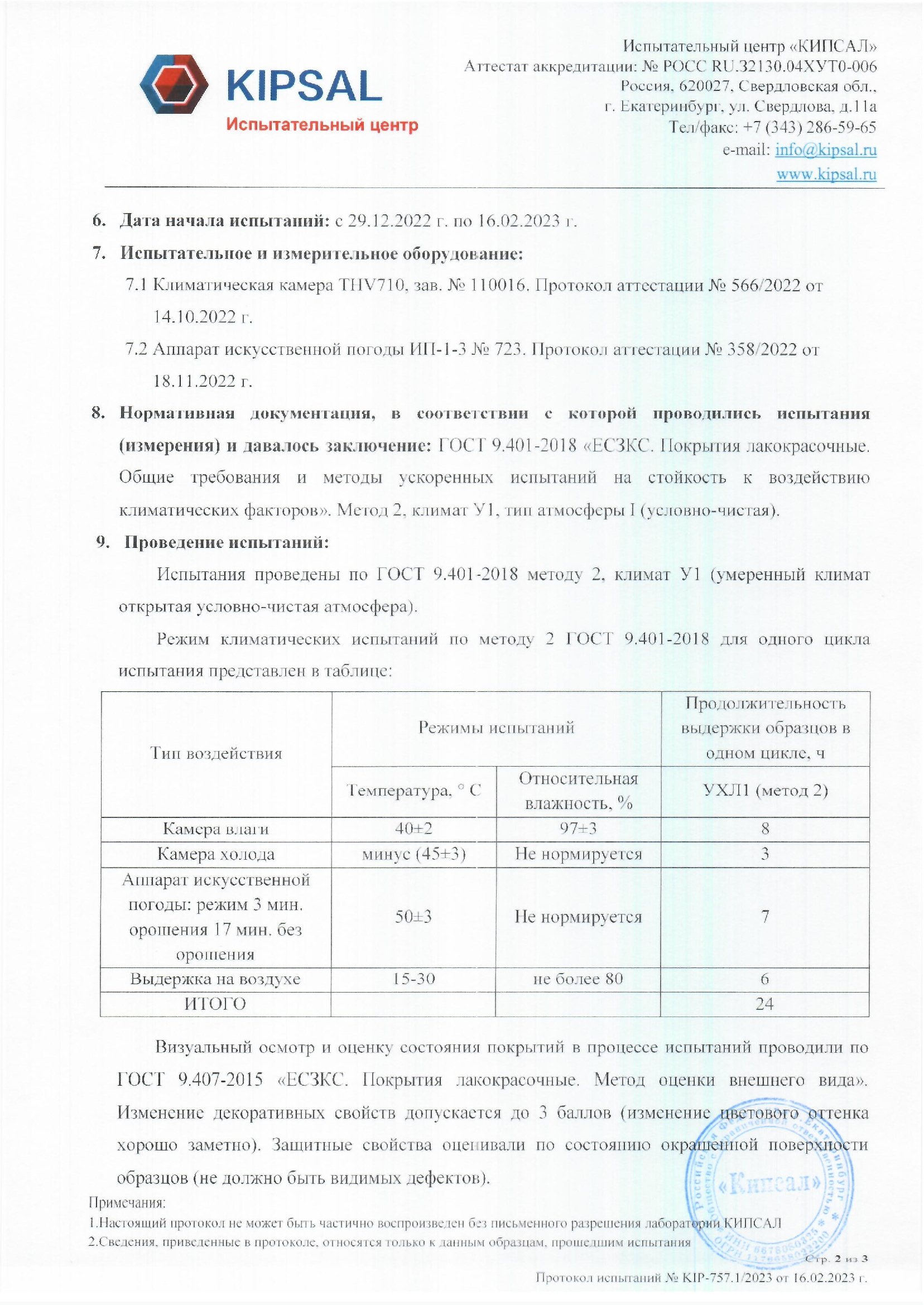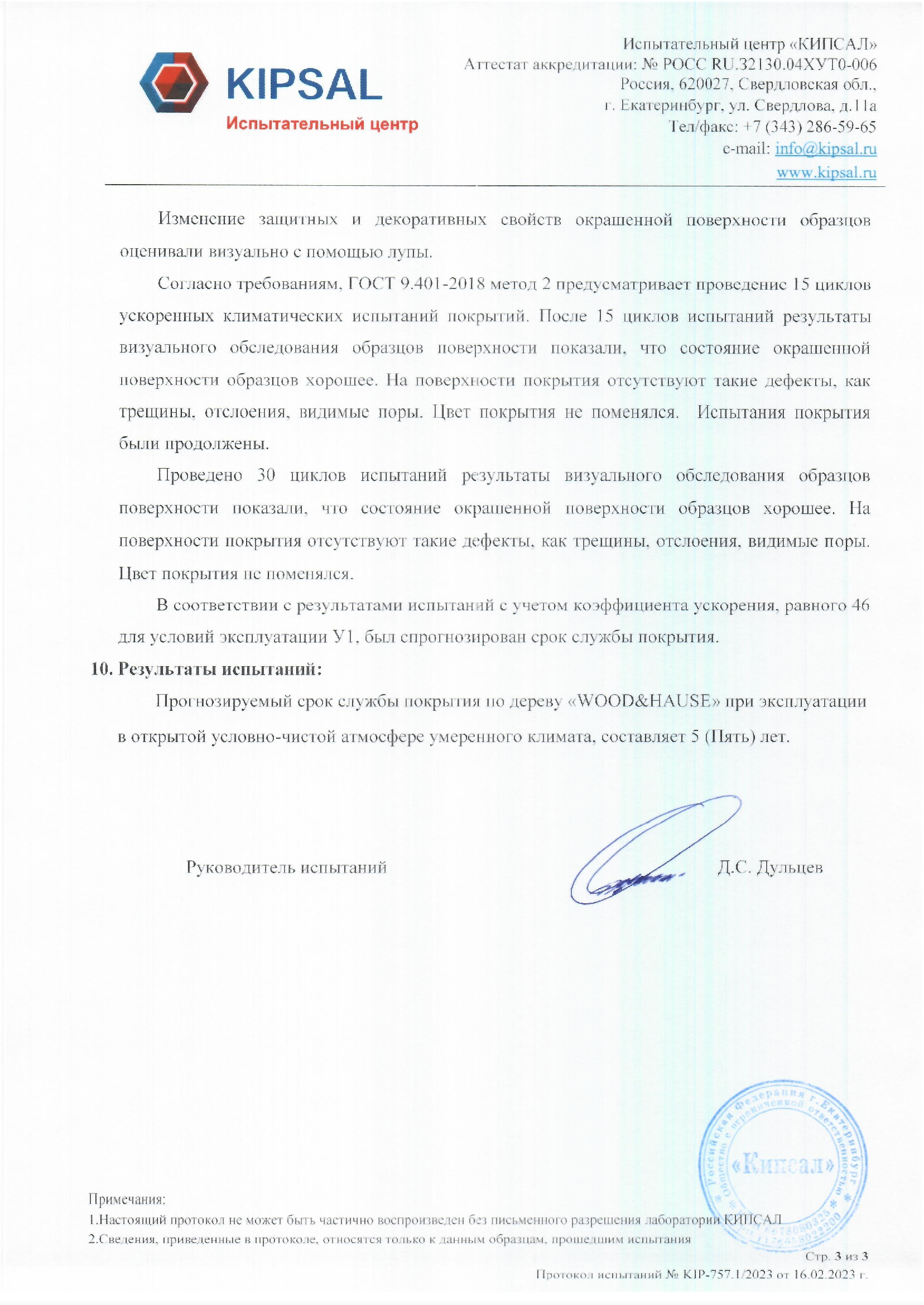 Наша продукция прошла атмосферные испытания на базе испытательного центра "КИПСАЛ", показав высокие защитные качества.